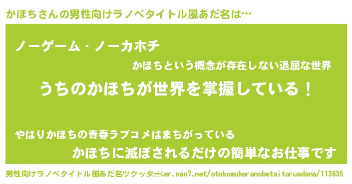 | ヘコむあだ名 | 『かほち(笑)』『なまこ酢』 |
