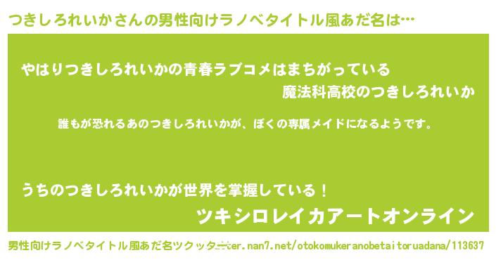 | ヒーロー風カッコイイあだ名 | 『ネオツキシロレイカ』『仮面ツキダー』 |