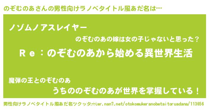| 意味不明あだ名 | 『自称のぞむのあ』 |