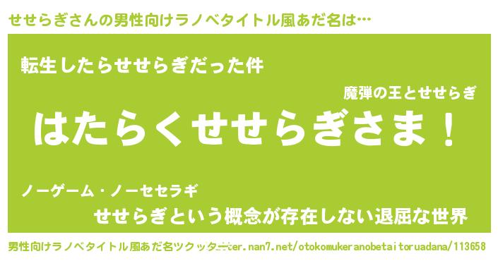 | ヒーロー風カッコイイあだ名 | 『ネオセセラギ』『仮面セセダー』 |