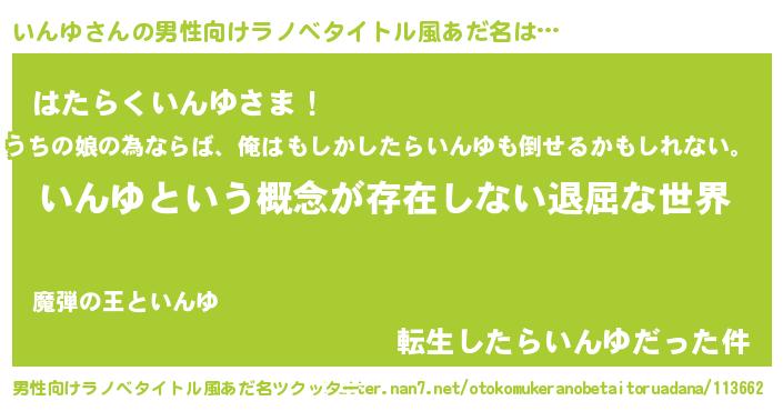 | 胡散臭い通販商品みたいなあだ名 | 『絶対に幸福をもたらす健康食品…その名も「いんゆ」』 |