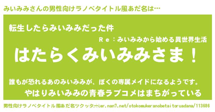 | ヘコむあだ名 | 『牛乳』『みいみみ(爆)』『みいにー』 |