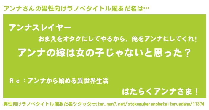 | 意味不明あだ名 | 『とにかく怪しいアンナ』『自称アンナ』 |