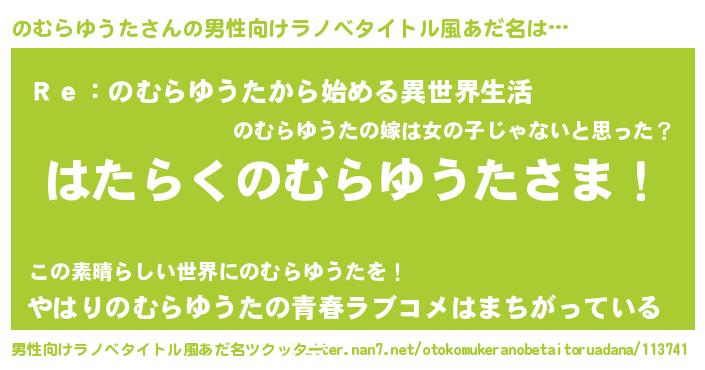 | 意味不明あだ名 | 『自称のむらゆうた』 |
