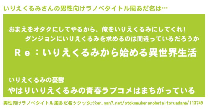 | 女子向けラノベタイトル風あだ名 | 『いりえくるみストレイドッグス』 |
