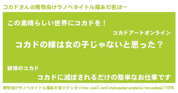 | 胡散臭い通販商品みたいなあだ名 | 『全米が絶賛したサプリメント…その名も「コカド」』 |