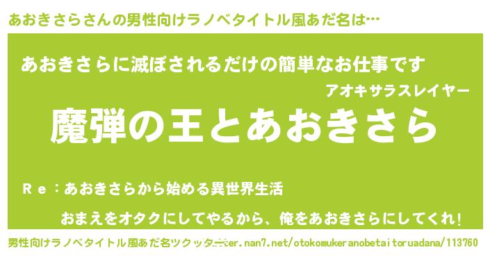 | 意味不明あだ名 | 『住所不定無職あおきさら(95歳)』 |