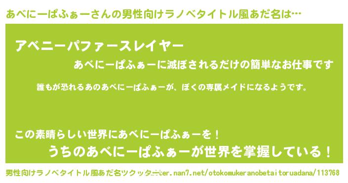 | 意味不明あだ名 | 『永久保存あべにーぱふぁー』 |