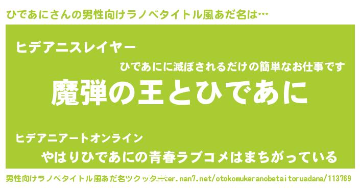 | 意味不明あだ名 | 『住所不定無職ひであに(71歳)』 |