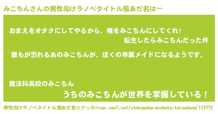 | ヒーロー風カッコイイあだ名 | 『ネオミコチン』『愛の使者みこちん』 |