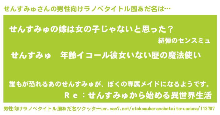 | 女子向けラノベタイトル風あだ名 | 『せんすみゅの玉の輿計画!』 |