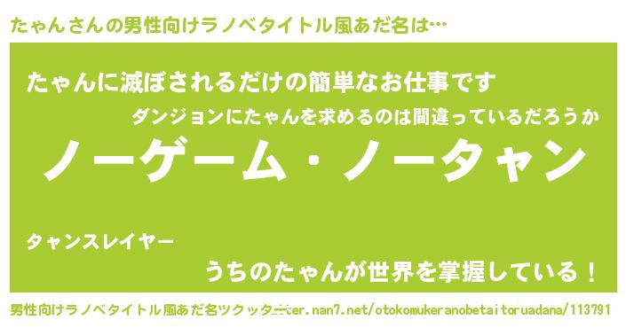 | 胡散臭い通販商品みたいなあだ名 | 『モンドセレクションを受賞した隕石のかけら…その名も「たゃん」』 |