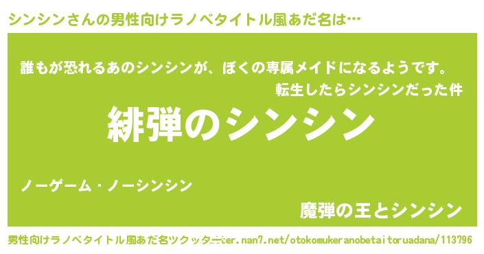 | 女子向けラノベタイトル風あだ名 | 『シンデレラシンシン家の靴箱館』 |