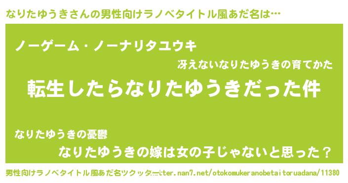 | 肩書あだ名 | 『なりたゆうき中将』『なりたゆうき塾長』 |