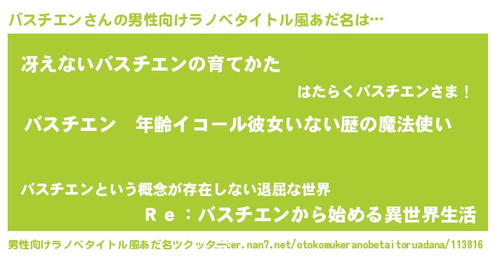 | 女子向けラノベタイトル風あだ名 | 『バスチエンの玉の輿計画!』 |