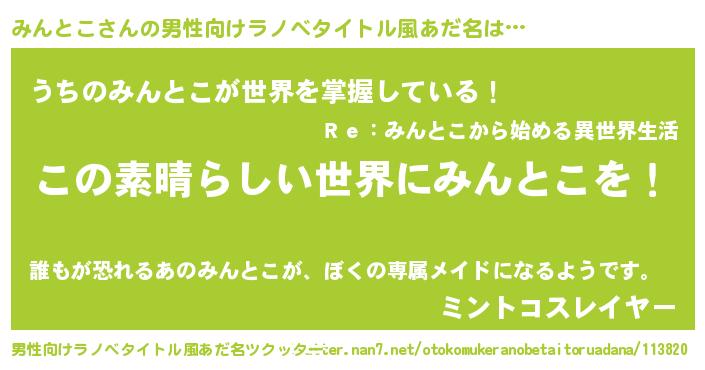 | 意味不明あだ名 | 『住所不定無職みんとこ(79歳)』 |