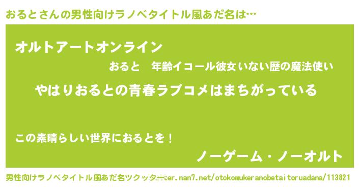 | 女子向けラノベタイトル風あだ名 | 『おるとの雑貨屋さん』 |