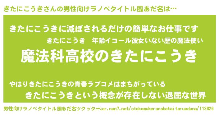 | 女子向けラノベタイトル風あだ名 | 『きたにこうきアンティーク』 |