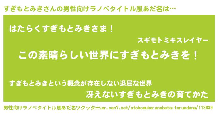 | 女子向けラノベタイトル風あだ名 | 『乙女ゲームの破滅フラグしかない悪役すぎもとみきに転生してしまった…』 |