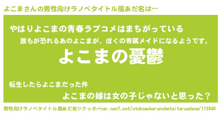 | 女子向けラノベタイトル風あだ名 | 『よこま姫と円卓の騎士』 |