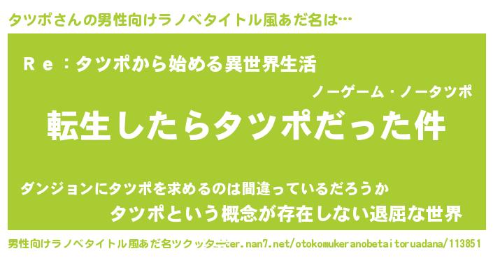 | 胡散臭い通販商品みたいなあだ名 | 『テレビで話題のアガリクス…その名も「タツポ」』 |