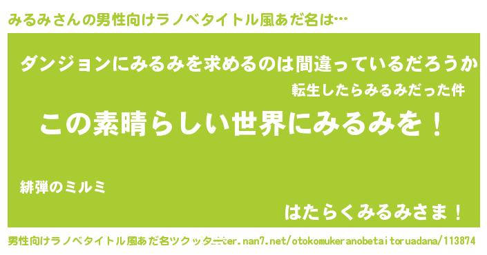 みるみさんの男性向けラノベタイトル風あだ名をツクッター!