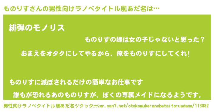 | 女子向けラノベタイトル風あだ名 | 『ものりす恋絵巻』『ものりす様がみてる』 |