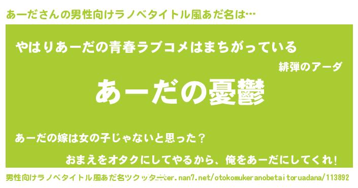 | 女子向けラノベタイトル風あだ名 | 『(仮)あーだのやんごとなき事情』 |