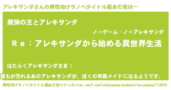 | 意味不明あだ名 | 『自称アレキサンダ』 |