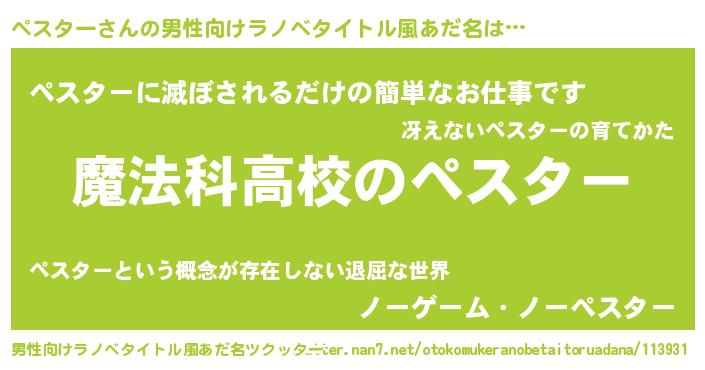 | 女子向けラノベタイトル風あだ名 | 『ペスターなんてお断りですっ。』 |