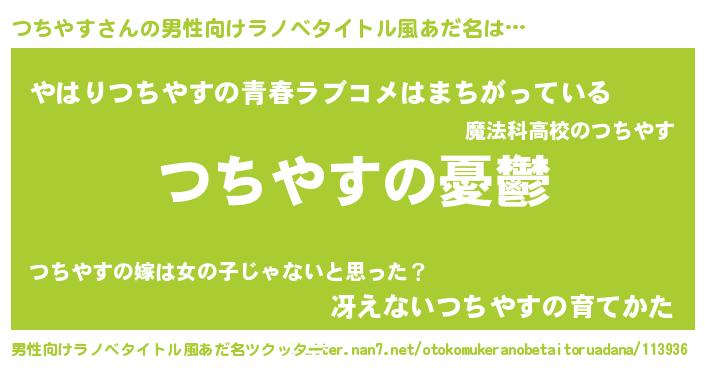 | 女子向けラノベタイトル風あだ名 | 『(仮)つちやすのやんごとなき事情』 |