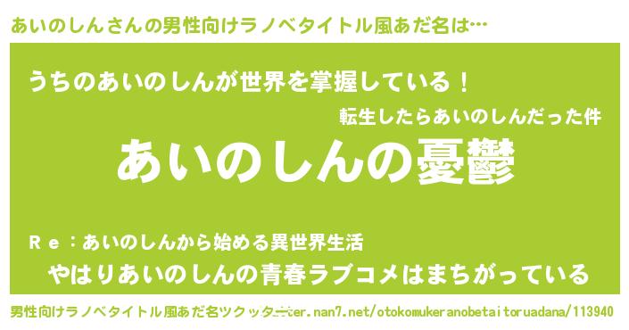 | 女子向けラノベタイトル風あだ名 | 『(仮)あいのしんのやんごとなき事情』 |