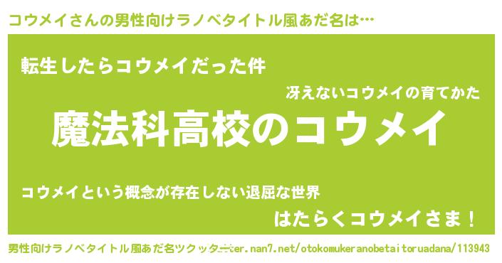 | 意味不明あだ名 | 『自称コウメイ』『なめこ科コウメイ属』 |