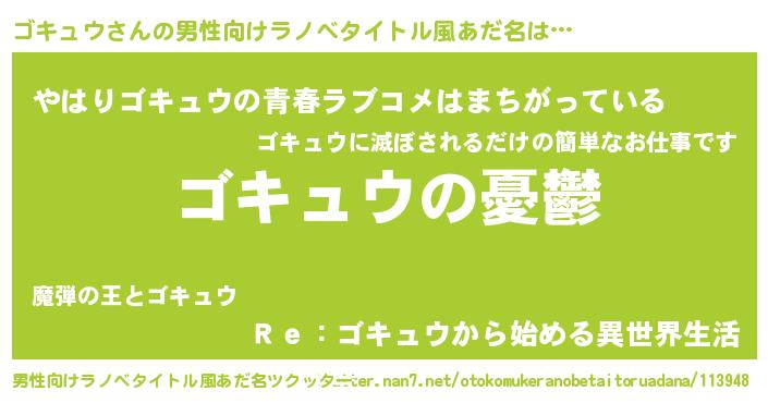 | 女子向けラノベタイトル風あだ名 | 『(仮)ゴキュウのやんごとなき事情』 |