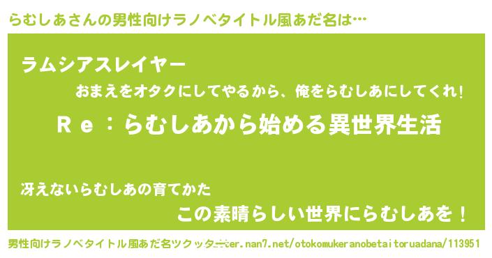 | 女子向けラノベタイトル風あだ名 | 『闇のらむしあ』 |
