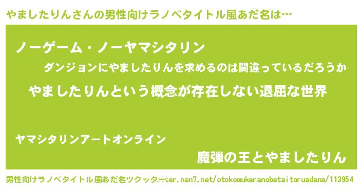 | 女子向けラノベタイトル風あだ名 | 『異世界で失敗しない100のやましたりん』 |