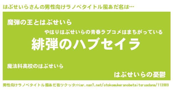| 意味不明あだ名 | 『住所不定無職はぶせいら(56歳)』 |