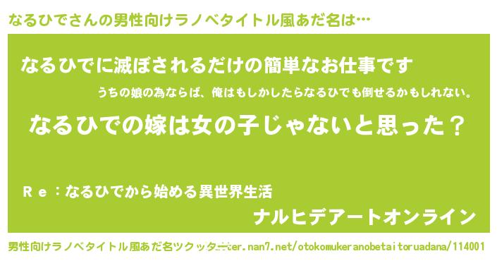 | 女子向けラノベタイトル風あだ名 | 『なるひでの卵を拾いまして』 |