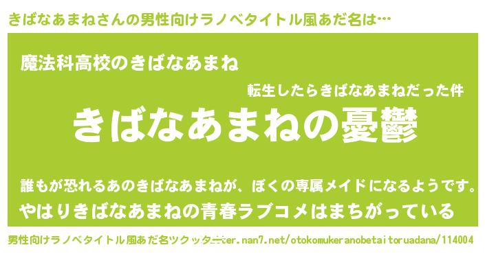 | 胡散臭い通販商品みたいなあだ名 | 『必ず成功する霊験あらたかなお札…その名も「きばなあまね」』 |