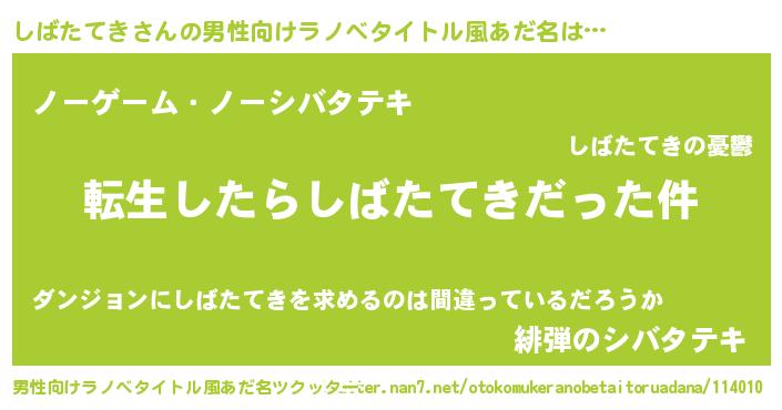 | ヒーロー風カッコイイあだ名 | 『友情の使者しばたてき』『黄金騎士シバ』 |