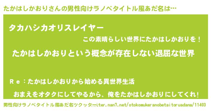 | ヘコむあだ名 | 『たかはしかおり(笑)』『たかお』 |