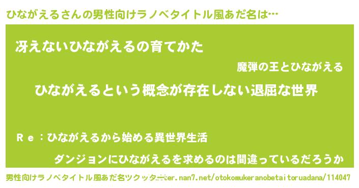 | 意味不明あだ名 | 『永久保存ひながえる』『自称ひながえる』 |