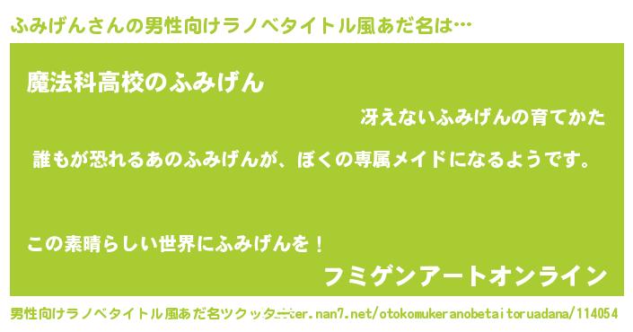 | 女子向けラノベタイトル風あだ名 | 『ふみげんの契約王妃』 |