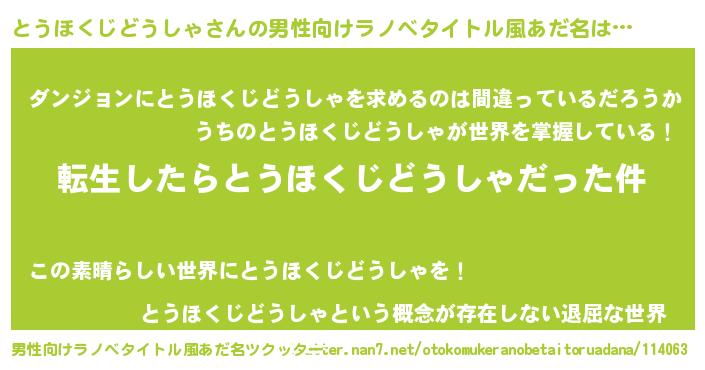 | 胡散臭い通販商品みたいなあだ名 | 『伝統あるサプリメント…その名も「とうほくじどうしゃ」』 |