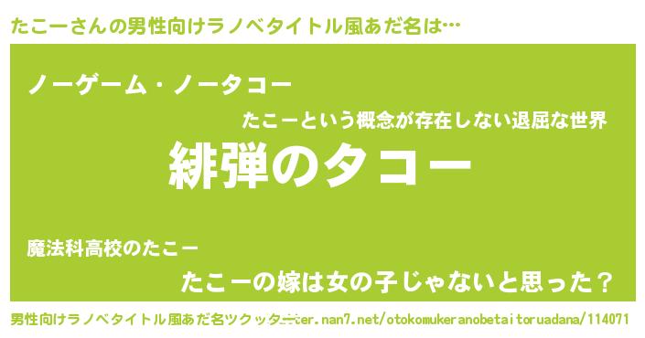 | 意味不明あだ名 | 『眠気覚ましガムたこー味』『自称たこー』 |