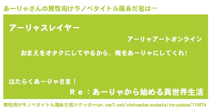 | ヒーロー風カッコイイあだ名 | 『友情の使者あーりゃ』『ネオアーリャ』 |