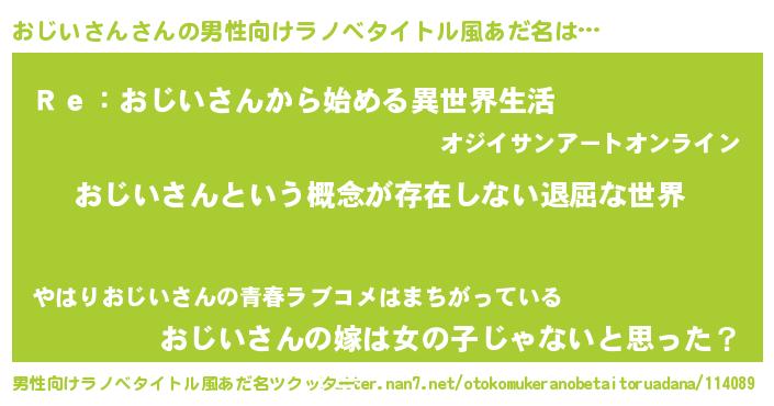| ヒーロー風カッコイイあだ名 | 『ネオオジイサン』『天弓騎士オジ』 |