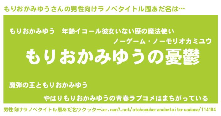 | 女子向けラノベタイトル風あだ名 | 『(仮)もりおかみゆうのやんごとなき事情』 |