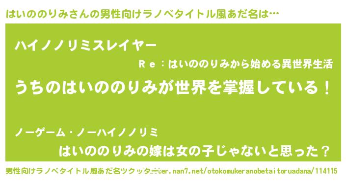 | ヒーロー風カッコイイあだ名 | 『天弓騎士ハイ』『スーパーハイノノリミ』 |
