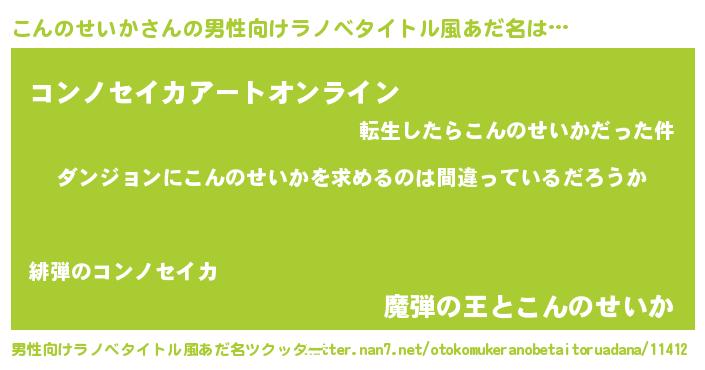| 料理風あだ名 | 『こんのせいかの豆乳スープ』 |